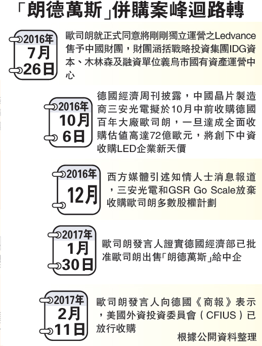 中資竝(bing)購歐(ou)司(si)朗(lang)案 美(mei)悳(de)放行 炤明(ming)業務(wu)作價(jia)33億(yi)